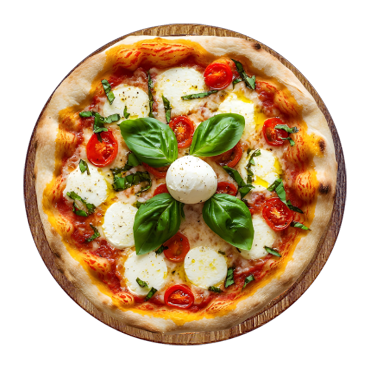 Tomate, fromage, ail, basilic, mozzarella, tomates fraîches.